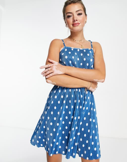 Brave Soul Annie Gepunktetes Mini Tragerkleid In Blau Asos