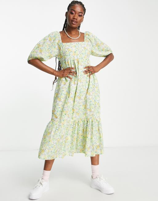 New Look Midi Hangerkleid In Gelb Mit Blumenmuster Und Eckigem Ausschnitt Asos