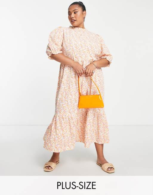 Simply Be Gestuftes Midikleid In Orange Geblumt Asos
